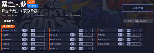 暴走大鹅十三项修改器使用说明