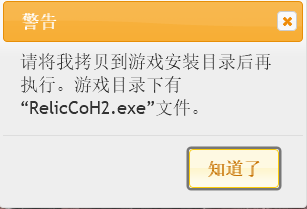 3、注意一定要复制到游戏目录下再执行,游戏目录下有"RelicCoh.exe"文件;