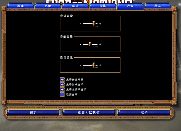4、在声音一栏可以调节游戏音量和语音音量,不想要声音的小伙伴可以在下面勾选取消音效;