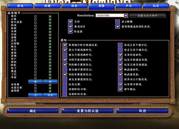 3、进入游戏后选择参数设置,在这里找到图像一栏,把全屏点上即可开启全屏游戏;