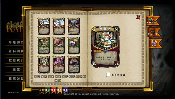 夜间城邦(Ratropolis)是由Cassel Games制作并发行的一款风格独特的卡牌类塔防游戏,该游戏是以老鼠作为主要题材,而在游戏中玩家将扮演一个老鼠部落的领导者,你不仅要维持族群的兴盛,建造繁荣的城邦,而且还要抵抗外族的入侵,保护你的子民免受野猫和各种怪物的袭击。另外,从游戏整体而言,夜间城邦这款游戏采用的是极为清新可爱的手绘风格,再搭配上不同以往的各种策略卡牌玩法,可以给予玩家们不一样的游戏体验。但由于游戏默认是不支持中文的,因此为了解决这个问题,小编为大家带来了