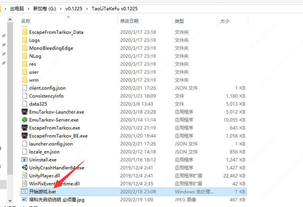 4、去到游戏目录,找到开始游戏.bat文件,双击运行它开始启动游戏和本地服务端。