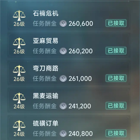一次可以接取5个任务,3个伦敦2个阿姆斯特丹,顺路的同时,利润也不低,而且礼盒还有可能开出来星书和商业技能经验书,都是非常实用的道具。