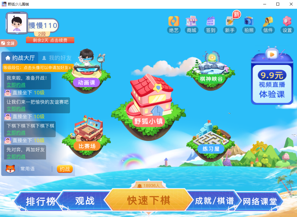 1、野狐小镇:孩子可以看动画课学围棋,进行围棋闯关,激发孩子的自主学习能力,培养孩子对围棋的兴趣。