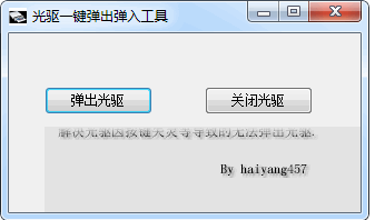 光驱一键弹出弹入工具官方版是一款简单易用的光驱操纵工具,可以快速的操纵光驱,光驱一键弹出弹入工具官方版只需要轻轻一键即可进行光驱的弹出与关闭操作,主要是为您解决光驱因按键失灵而无法操作的情况,欢迎下载使用。